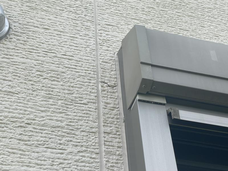シャッターBOX横の外壁に、ひび割れが発生していました。開口部まわりは負荷がかかりやすいため、ひび割れが起きやすい箇所になります。下地補修を行ってから塗装します。
