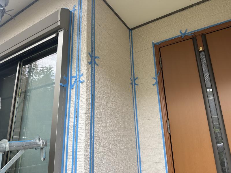 ドアまわりやまどの周りなどは状態を確認し、既存のコーキングを活かした増し打ちで対応しています。