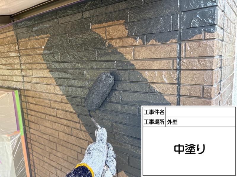 経年劣化によりカラーベストが割れ、一部が欠け落ちていました。事前に補修を行ってから塗装をしていきます