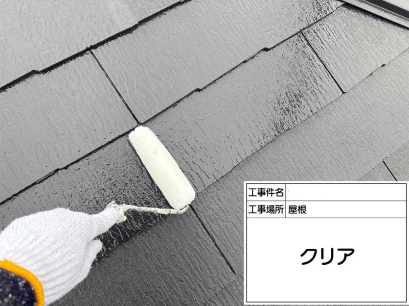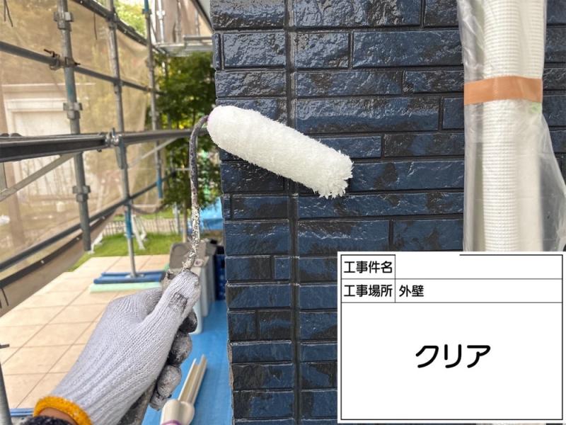 ベランダの2色塗りが完了したあと、仕上げとしてクリア塗装を行っています。色合いを保ち、きれいな状態が長く続くようにしています。